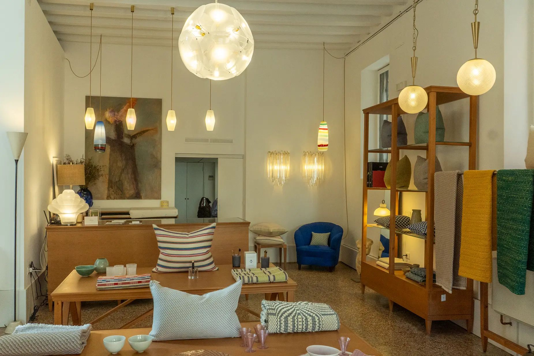 At the end of a long, quiet salizzada that forks into two, Chiarastella Cattana’s curated boutique of textile and homewares invited us in. We were struck by Cattana’s ability to connect her own designs to other makers throughout Italy, from rug makers employing centuries-old techniques to glass blowers pushing the boundaries of contemporary design. Chiarastella’s deep knowledge of and appreciation for Italian craft is obvious. She loves to reinterpret classical technique with a modern sensibility, including in embroidery and weaving. Her linens and textiles feel effortless and light, the perfect backdrop for summer meals and lazing around outside.